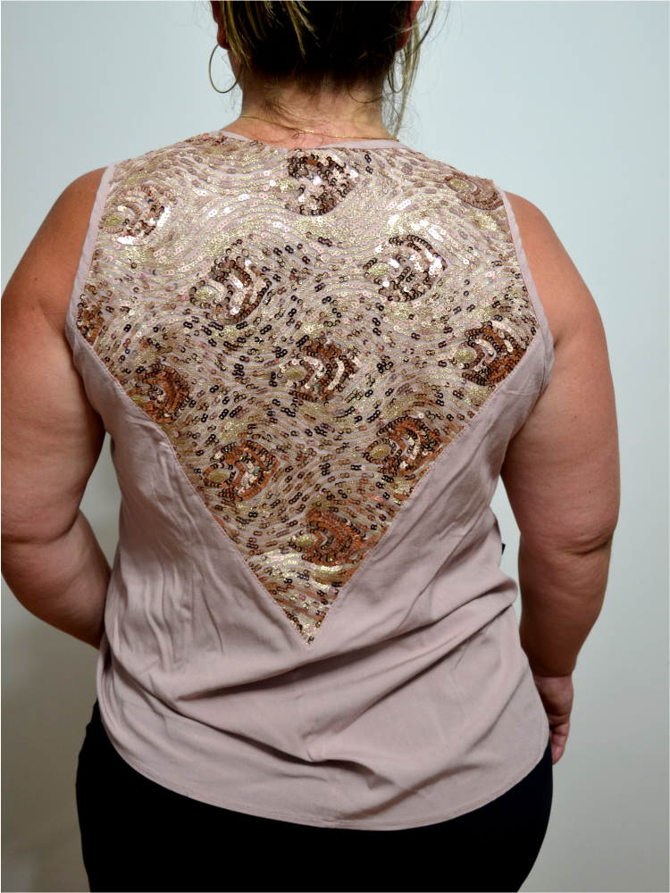 Regata Plus Size de Viscose com Elastano, Decote tipo "V" e detalhe em Paetê na Frente e nas Costas