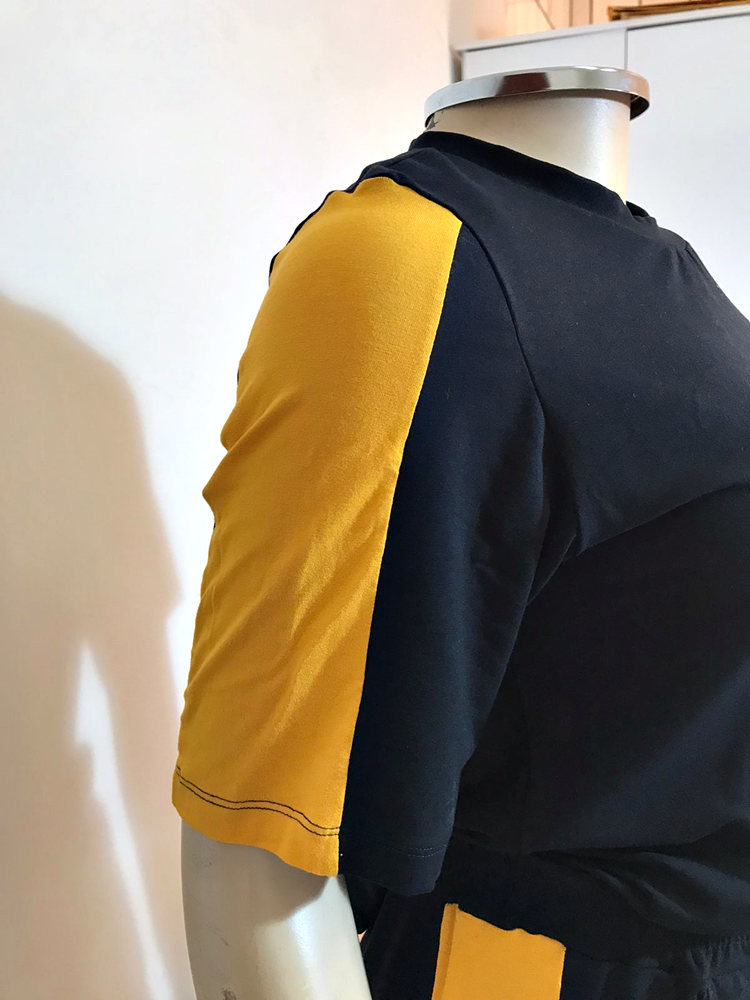 Conjunto de calça em viscolycra, bicolor (amarelo e preto) e manga longa