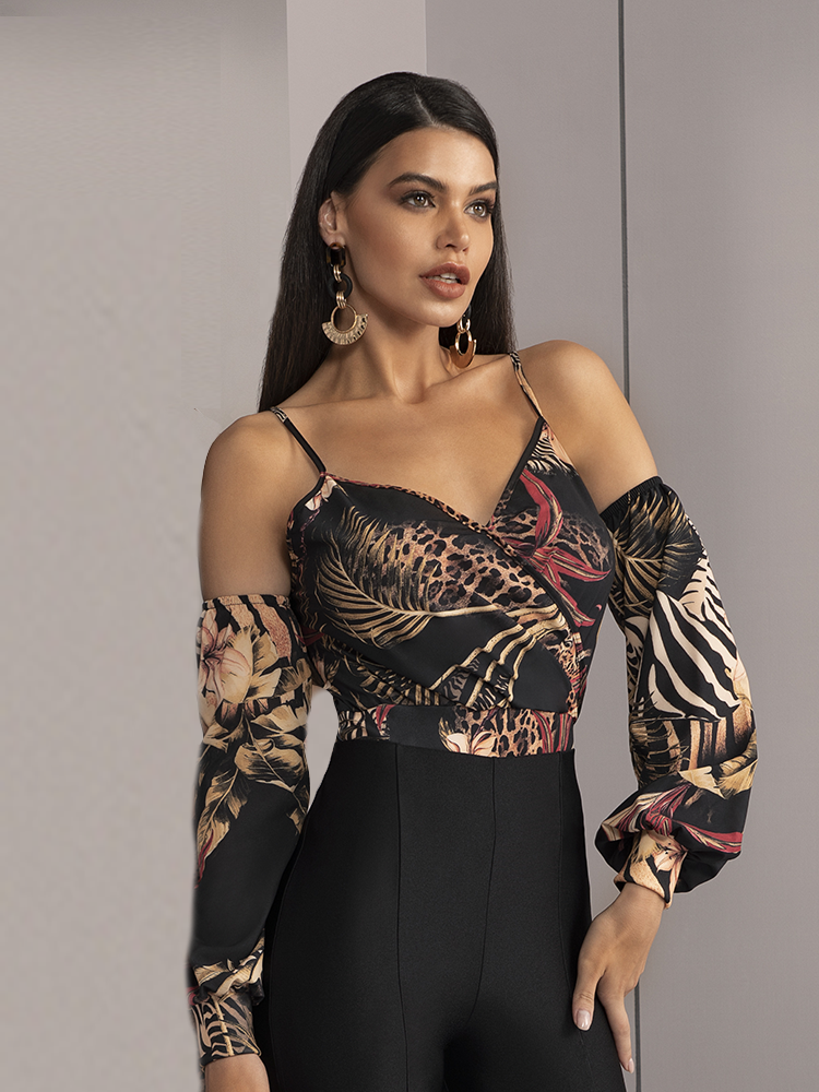 Blusa de alça,versatil, manga longa com punho na cintura